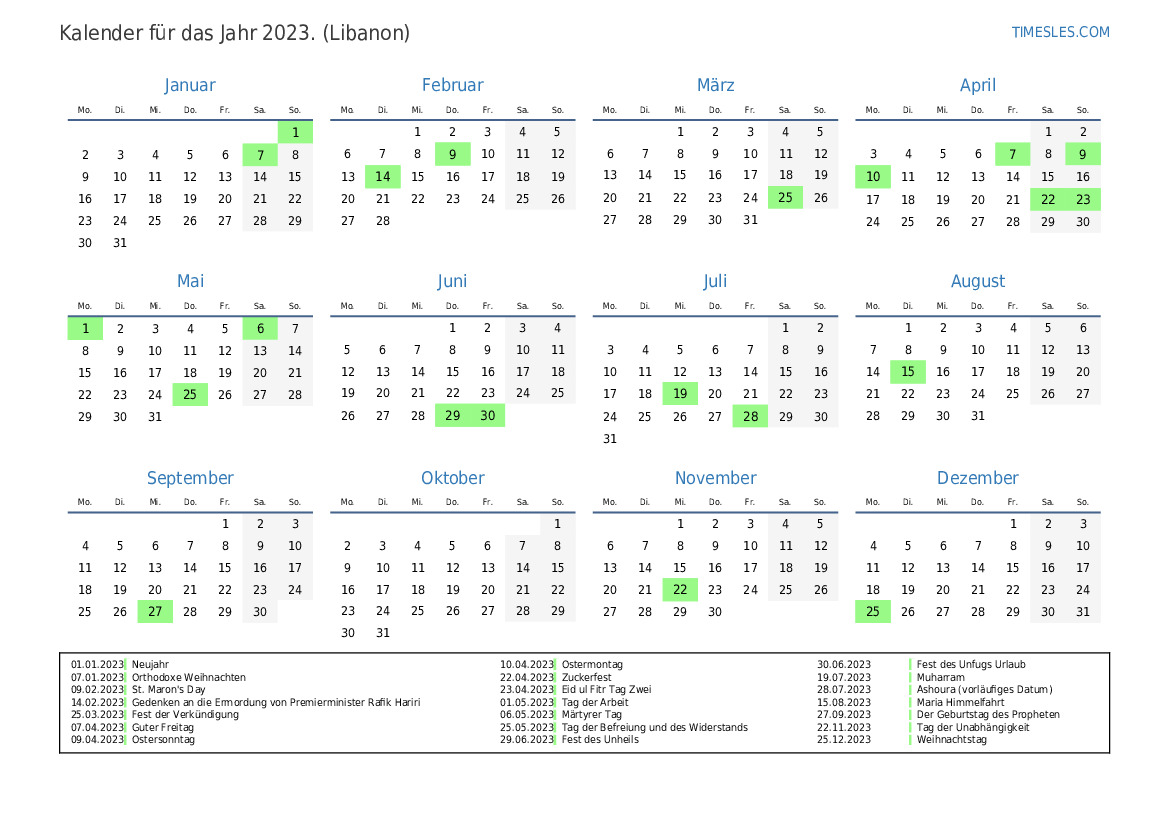 kalender fur 2023 mit feiertagen im libanon kalender drucken und - printable calendar 2023 for qatar pdf | printable calendar 2023 qatar.